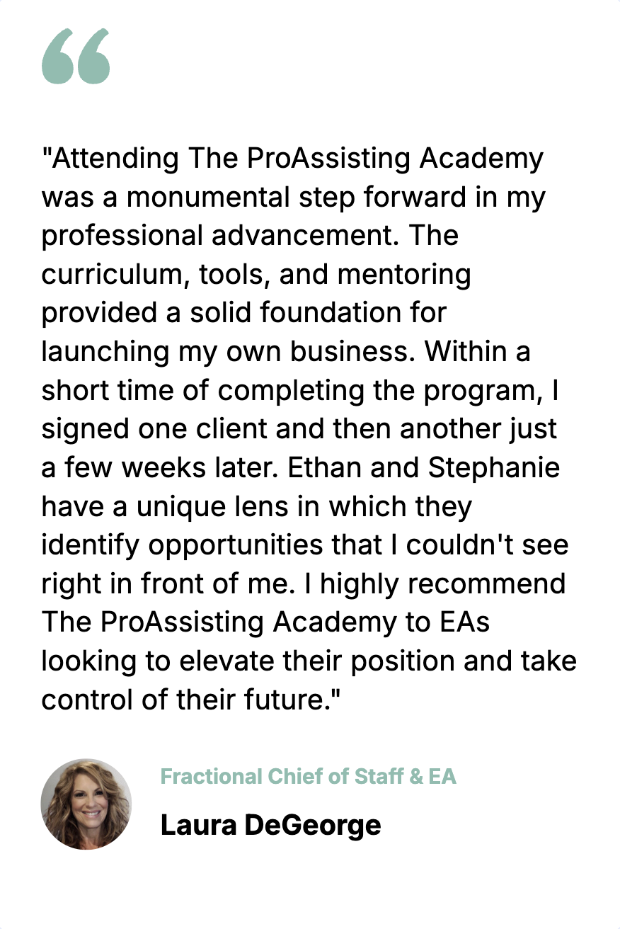 If you're seeking to expand your career possibilities as an executive assistant, increase your income, and leverage your skills in new ways, you’re ready for The ProAssisting Academy.